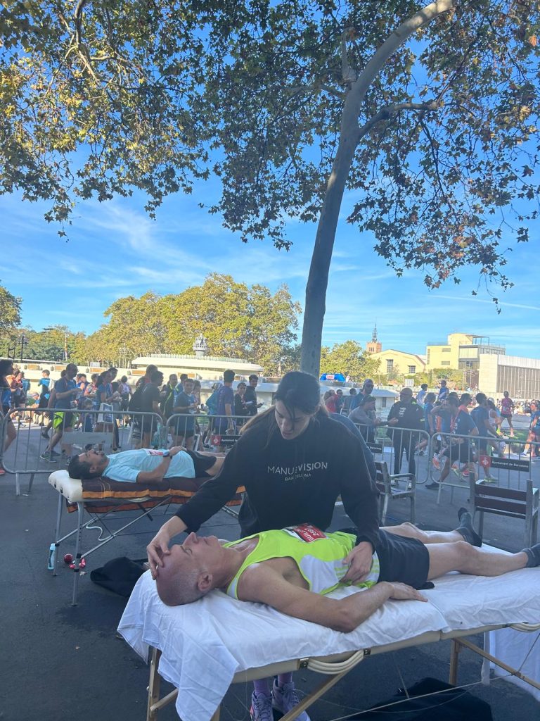 For over three years, Manuvision has collaborated with La Sansi, an organization specializing in marathons and popular running events in Catalonia. The goal of this partnership is to enhance care and recovery for participants in these sporting events. During these competitions, the Manuvision team provides post-race manual recovery treatments to participants after they finish. These treatments are designed to support physiological recovery following the prolonged effort of endurance races.